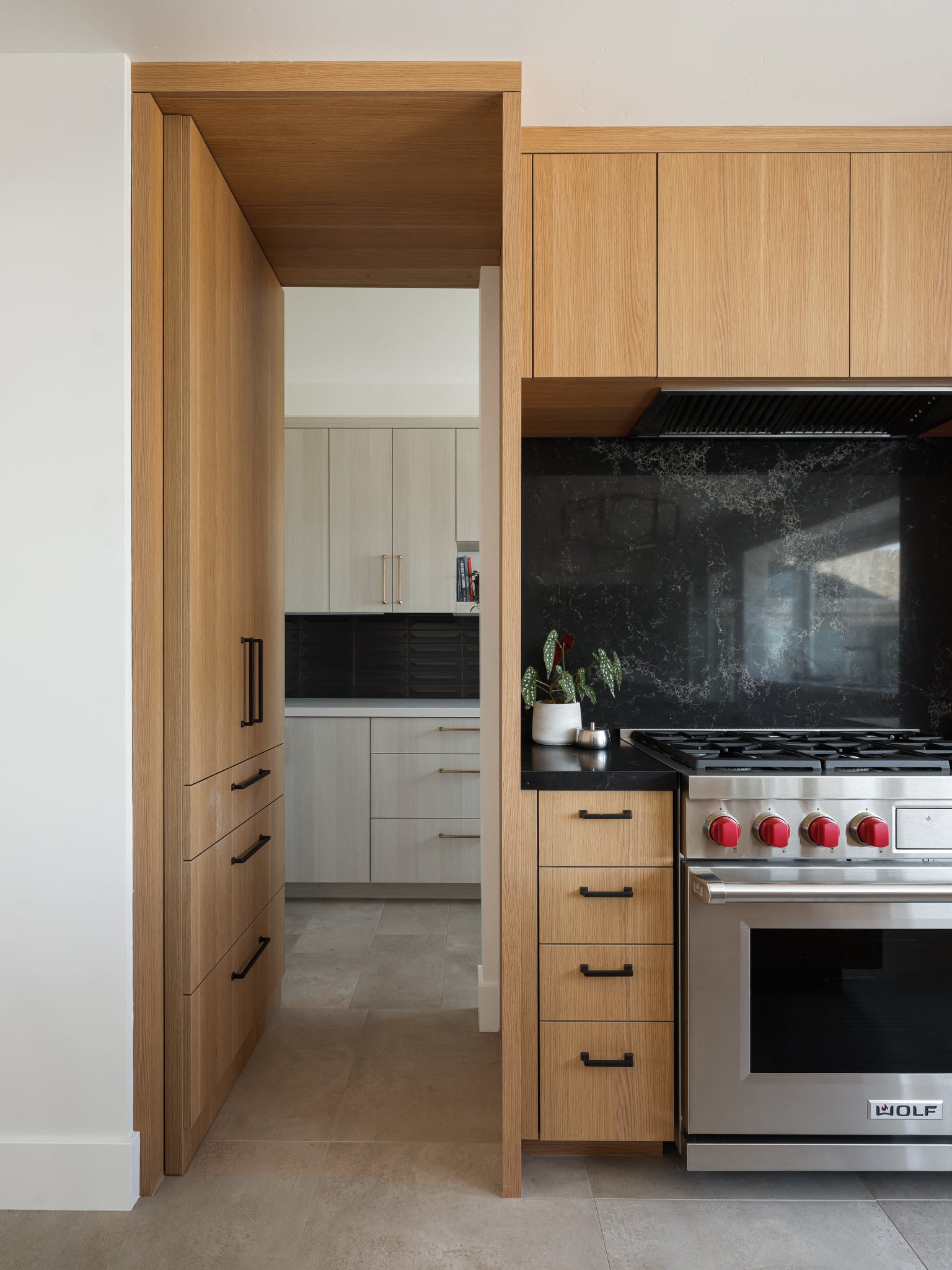 Let’s be real, life comes with a lot of accessories… especially in a kitchen. A hidden pantry tucked away in this kitchen holds all the odds and ends, allowing the main kitchen to work efficiently with little counter space. Closed cabinetry and a detailed design specific to everyday needs makes this kitchen more than just a pretty face. It’s what’s inside that counts.