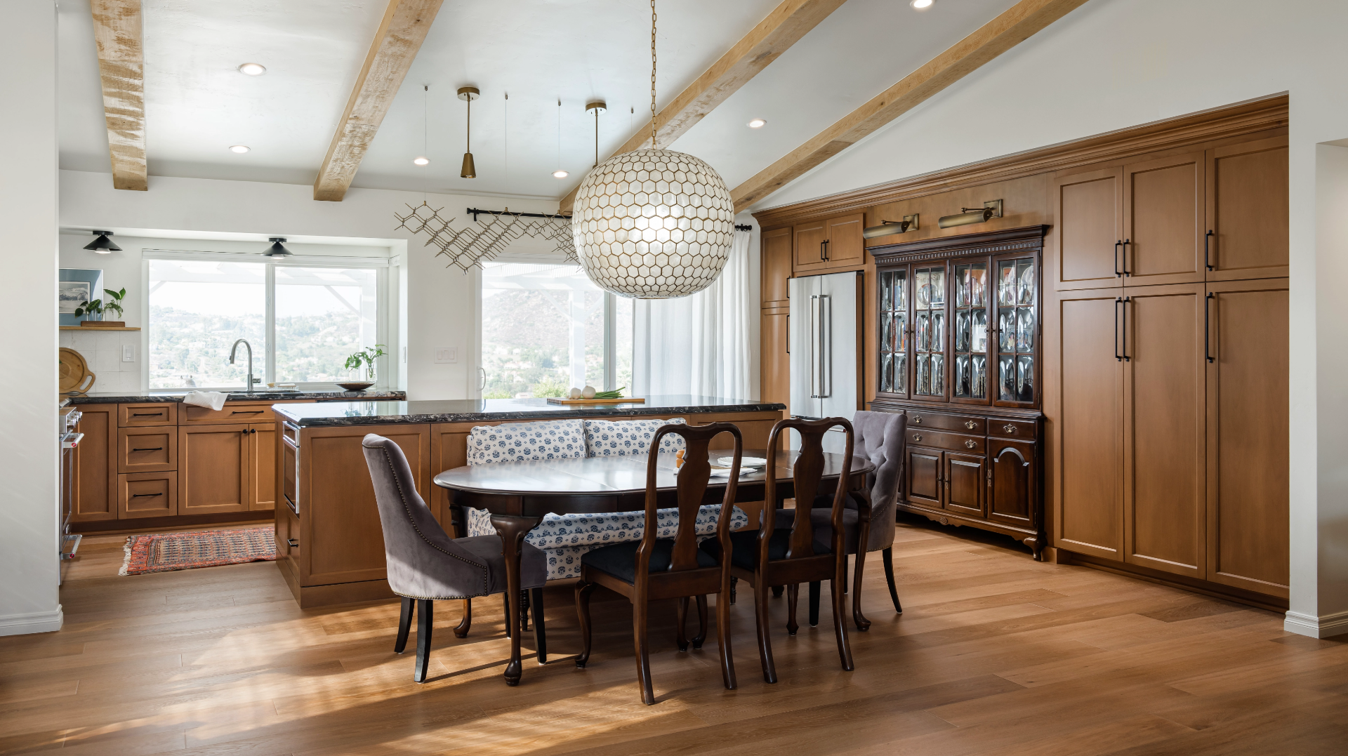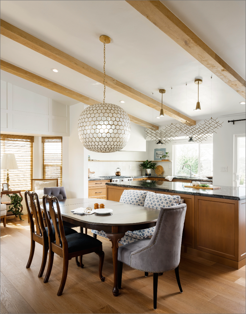 Designed with togetherness in mind, this great room has everything needed for a family to gather. Designing the space into individual pockets, while keeping everyone together, was the name of the game. The large island with a connecting dining room grounds the space for everyone while dinner is being made and appetizers are enjoyed. The grandkids can snuggle up in the cozy window seat and still be a part of the party. Bring on the memories!